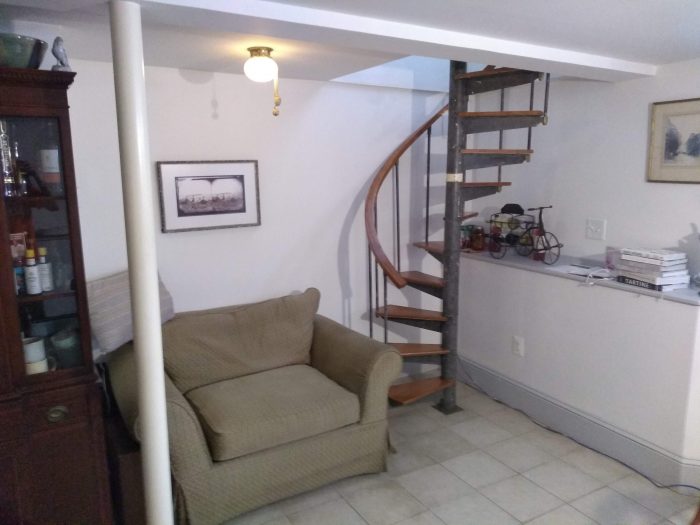 十几年前,我和妻子把我们公寓一楼的地下室改造成了一个相当舒适的居住空间。一个小小的旋转楼梯是实现这一切的关键。我不太确定事情会如何发展,但结果超出了我们的预期。正如Matt在文章中所指出的,如果旋转楼梯的位置合适,可以极大地节省空间。在我们的情况下,我们在建筑的公共区域有一个从一层楼到另一层楼的常规楼梯,所以移动大的东西不是一个问题。这使得我们可以使用3 ' 6 "的楼梯,而不是更标准的60 "。3英尺6英寸的要求开口只有46英寸乘46英寸。我可以说,空间使用和效率的改善改变了生活。在我们生活费用昂贵的城市(波士顿),它让我和妻子有了一个足够漂亮的家,有足够的隐私,同时还能偶尔享受几个稳定的室友的陪伴(和稳定的租金!)虽然他们的租金仍远低于市场水平,但我们的房客的经济贡献让我们能够迅速偿还抵押贷款。 Nowadays it more than covers our housing expenses. This in turns means that we can focus our time and energy doing things that we enjoy and value (including writing semi-annoying comments!) as opposed to spending our days working for the man.