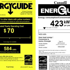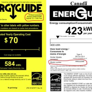 你写的“你应该只使用黄色的能量指南标签来确定每年使用的千瓦时数。”.我用黄色能量指南上的数字比较了类似型号的冰箱。几年前我买了一个美泰格底冰箱模型,它显示了每年的用电量估计为404 kWH——我在夏季月份用Kill-A-Watt来衡量实际用电量,很高兴地看到它的用电量比这个估计少。在查看今天冰箱的能源指南时,我注意到家电零售商在网上发布的能源指南包括美国政府的黄色能源指南和加拿大的能源指南。两者列出了不同的年度估计用电量??在如下图所示的一些型号上,161千瓦时的差异是巨大的。你能相信哪个数字(如果有的话)?