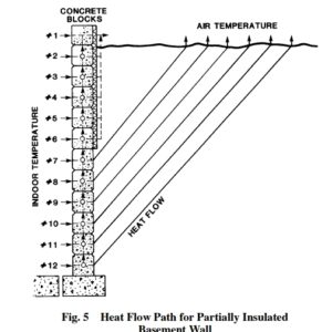 不保温的平板或基础墙将失去更多的热量,并倾向于使土壤升温,如果它是保温的。虽然较温暖的土壤降低了混凝土之间的温差,但混凝土和周围土体的组合是否提供了更高的有效传热区域?显然,通过隔热板或墙壁的热量损失将低于通过不隔热板或墙壁(隔热板或墙壁将提供更大的人类舒适度)。同样明显的是,干燥和沙质土壤的导电性比潮湿的土壤要差。虽然已经展示了一些3D模型来显示各种情况下的土壤温度剖面,但在我看来,对于传热目的而言,接近板或墙截面的土壤温度的选择,无论隔热与否,都很难定义,并且在整个热损失模型中相应的条目将是模型中最不准确的。