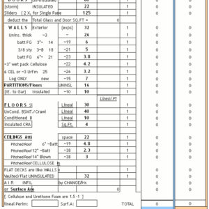 当我为我们的新房子构建了散热模型时,我使用了一张电子表格来制表和计数U *的所有上述墙壁部分,窗户,门和阁楼地板的数字。当然,计算区域并确保我没有错过任何乏味。同样,我在模型中有几条线来解释由于预期的自然漏气,并且在HRV效率造成的机械通风中丢失的损失。仍然在各种R和U值的限制内,实际上匹配现实,热损失的那些部分定义得很好。