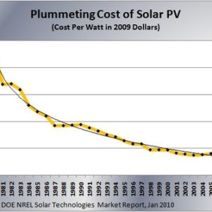 但很明显,到2020年,甚至可能到2015年,光伏发电很可能在没有光伏补贴的情况下,甚至在每千瓦时的批发价格水平上,实现与化石发电厂的并网。(在对碳排放征税的地方甚至会更快。)