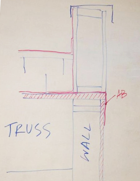 图片1:凯西·布劳格 在设计过程中提出的概念细节,以解决临界墙体到屋顶接头的空气屏障连续性。