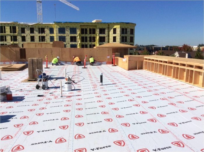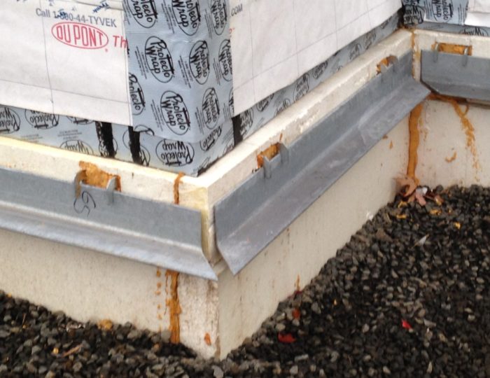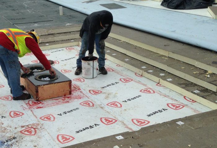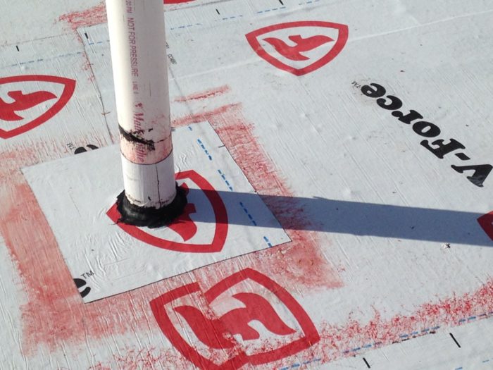 屋顶的所有服务穿透(例如管道通风口)用湿密封剂密封到自粘膜上(见图像#8)。