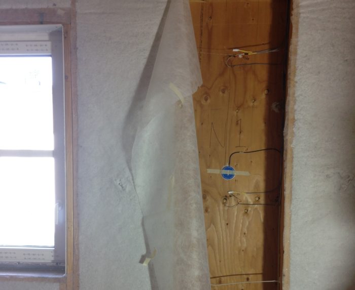 在建设期间,我们与建设科学咨询公司(BSCI)和Roxul合作,建立一个监测外墙的水分性能的计划。随着内部终结循环开始,BSCI来到了现场并安装了传感器,引脚和其他仪器,以服务监测研究。