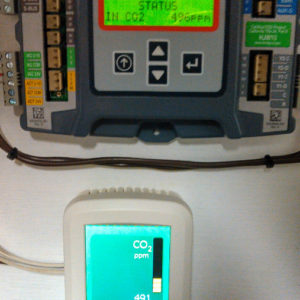 在过去的几年里,我一直在用商业霍尼韦尔二氧化碳监测仪和省煤器控制器控制我的HRV,这两个都是从eBay买来的。取样在我们的管道HRV的排气口进行。