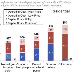 这是一个条形图,来自达纳链接到的RMI报告。注意(在设备的寿命期内)住宅地源热泵的热量成本高于空气源热泵的热量成本。