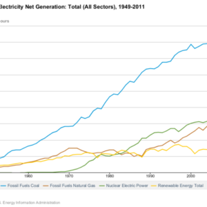 下图说明了煤炭的重要性和可再生能源在美国发电方面的重要性。