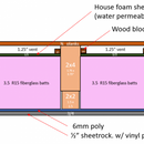 框架:2×4的afters,有4英尺的膝盖墙,在24英寸的中心。(严重地)。护套是原始的1×6板。构架木材实际为3.75 x 1.75英寸。