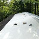 部分甲板上有钛和30号毛毡——部分被涂上了弹性屋顶密封胶(在撕掉漏水的屋顶和饱和的旧纤维板绝缘材料后,花了一些时间)。