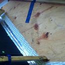 举个例子。这个附件显示了其中一个棚屋天窗的屋顶侧。屋顶由胶合板组成,30#毛毡,在墙/屋顶交汇处的毛毡上滚闪,在接缝处粘上1.5″层polyiso,然后在钉子之间钉上2 x 4层1.5″polyiso,然后在接缝处粘上另一层胶合板,30#毛毡。接缝是交错的,所以不会重叠。这些都将被金属屋顶覆盖。