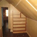 完成的阁楼有两个主要的房间。照片显示了楼梯顶部的进展,进入与第一室相邻的爬行空间。一些镶板在爬行空间内落在爬行空间内,因此我可以看到屋顶椽子和护套,尽管我没有密切检查。