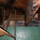 It appears that the brick nogging is on the interior side of a wooden band joist, which is pretty unusual, to say the least!