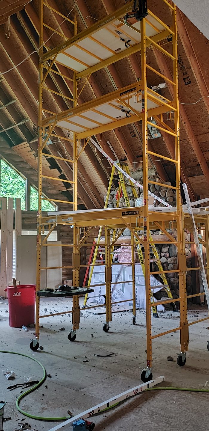 我买了2段“户外”5'x7'脚手架新的约500美元,租金将很快变得比这贵。它在室内天花板、我们房子一侧的门和我的杆子谷仓的布线方面都是无价的。