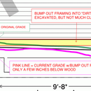 Problem #2: I was blinded by protecting my favorite tree and failed to account for subfloor framing in my measurements of the exterior grades and now the bottom edge of the bump out is pretty much at grade (it’s on a hillside, so only the left half of it). I’m regretting this decision, but it’s framed and roofed so I’m trying to find a solution to protect it from moisture and rot long term.
