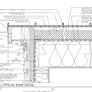 通过使结构工程师规范具有下面的椽子抵消了从下面的椽子抵消了它,这导致平板下的平板上的2x4堵塞。我附上了一个详细信息,展示了它是如何完成的。我们不想拥有热桥接问题,我们不想垂直于屋顶的斜率,使得在超帧组件中的任何偶然水可以排出并出去。