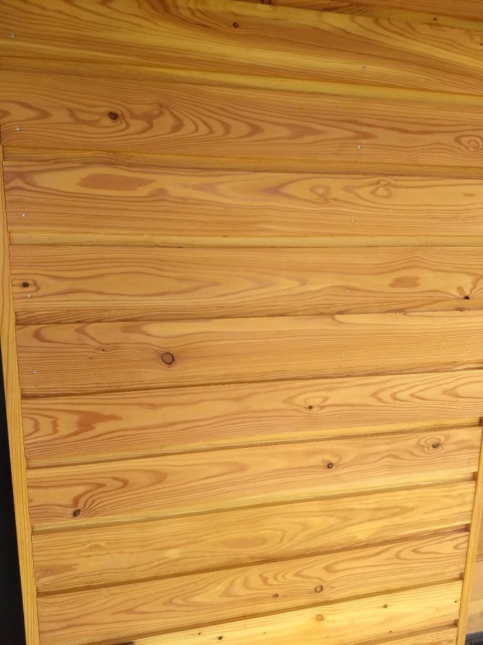 这是落叶松(也叫tamarack)。很抗腐,我想东北地区都有。我不得不自己做侧写,因为我没有找到任何预先做好的。这是用1x6做的。我现在使用1x8的甲板,我得到了大约7 1/4“。
