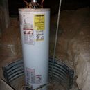 – The current 30 gal DHW tank is probably on its last legs. It is located in the vented crawlspace and is not installed properly; it is sunk in the ground ~2 ft and has incomplete retainment surrounding it (see picture). This is the low point in the crawl and there is no sump pump currently installed.