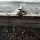 冬天积了很多雪。由于沥青和绝缘的数量,没有条件下,雪滑落自己。最终,冰在裂缝的顶部堆积起来。随着天气变暖,可以观察到水从屋顶较低部分的悬挑下滴出。我猜整个屋顶的接缝处都在漏水,水从屋顶平面往下渗,覆盖了衬垫层。