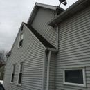 I vote to keep the ducts separate. But switching from corrugated duct to rigid duct is a good idea, and gable terminations are better than soffit terminations.