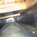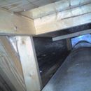 2×4框架,创建一个追逐壁炉通风口的追逐 - 围绕烟囱盖,通过阁楼空间开放框架。壁炉通风口是一个典型的双墙钢通气堆栈。通过第二层进入阁楼的通风口渗透并用阻燃泡沫堵塞并密封。顶部帽也似乎正确安装。2×4框架用相同的技术屏蔽覆盖,用于覆盖屋顶。然后用家庭包衣覆盖,用冰水完全包裹,然后用屋顶毛毡和车床覆盖灰泥。追逐无限制。