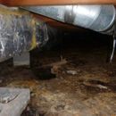 我在其周长上计算了四个14×10个通风口。汽化和水分污渍呈现爬行空间的块状周长。房主提到了排水问题,虽然房子周围的地面干燥。此外,干燥器通风进入爬行物。(显然增加了这个问题,但是多少?)