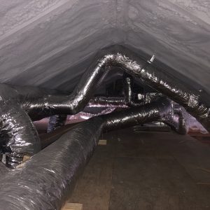 1.一个单一的高速空调系统(Unico),通过大约18个长而细的管道从阁楼的静压室到达几乎每个房间,和