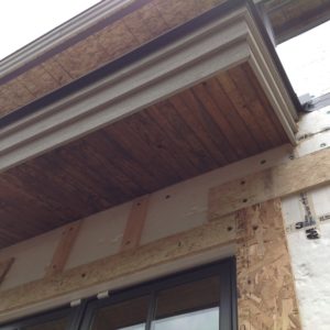 这里是我上面展示的最后一步的修剪。没什么大不了的。如果有水落后,则WRB与Windows和OSB在同一平面上。我用的是杜邦公司的Drain Wrap。