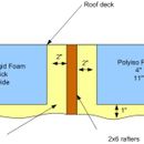 首先快速计算一下。一位泡沫喷涂承包商来到我们的房子,并以1美元/板英尺(5英寸的泡沫喷涂价格为5美元/sgft)的价格,对整个屋顶平台的底部进行了5″的喷涂泡沫投标。相比之下,我可以买到4块″厚的回收聚碳酸酯泡沫板,价格约0.15美元/板英尺。此外,喷涂泡沫承包商在计算时使用了屋顶甲板的整个表面积,尽管有15%的屋顶甲板被框架占用。