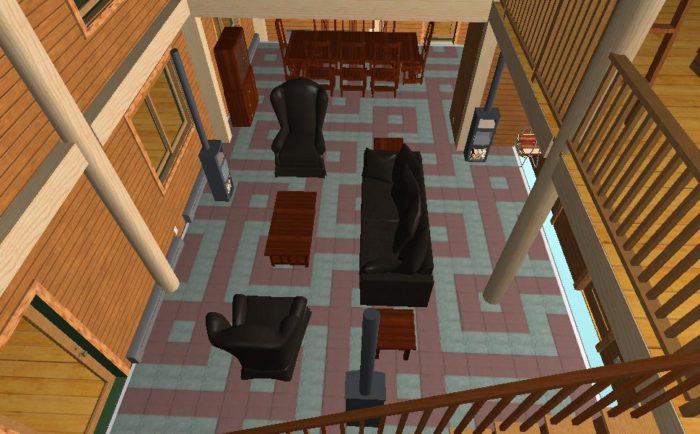forgot I can post attachments. Here is a rendering of the place with the floor pattern done by using jpeg images of the actual tiles...