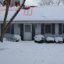 The horizontal line on the left side of the house spans multiple rafters and is part of the knee wall sloped section. The sloped section is is roughly 3′ long and appears to be uninsulated as well. The previous owners may have rolled up some batt insulation and stuffed it in the end of the rafter bay if you want to call that insulation. This sloped area on the second floor is part of the closet for the upstairs bedroom.