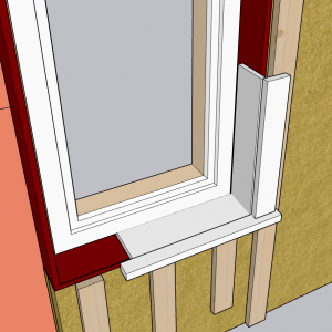 I am also wondering if the rainscreen underneath the window should have horizontal furring strips or if our exterior trim should only be nailed to vertical rainscreen furring?