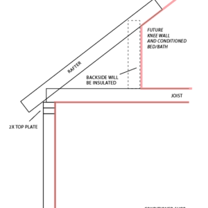 在大多数情况下,最好是把膝盖墙后面的三角形空间放到有条件的信封里。有关更多信息,请参阅本文:“阁楼膝盖墙隔热的两种方法。”