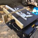 我建立了一个更大的热丝切割机模型的径向臂锯栅栏是可调节的,可以削减约5“到约23-1/2”。有人会对记录和信息感兴趣吗?它非常简单,主要是用2×4和一些废胶合板建造的。唯一的“花式”部件是一个变压开关(用来调节热导线的电压和温度)和一个变压器来为热导线提供低电压。