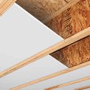 切割3″poly iso (R-19.6)适合之间的9½“TJIs (19.2 o.c.)和休息在底层法兰安装之前(或阶段在底层进入之前在爬行切割件)。之后,切开检修孔,吹纤维素,填满托梁的剩余部分。