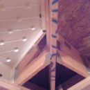 我正在给阁楼安装隔热挡板。我遇到了一个问题。我的屋顶是时髦的风格,角落有一个主要的桥桁架,小的家伙附着在那里形成角落。头两个紧靠屋角的椽子间几乎没有什么空间。接下来的两个在每一边都有更多的空间,正如你所看到的,我刚刚切了隔热挡板在一个角度,以适应。我有几个问题,如果我挡住了非常角落的海湾,我是否会遇到湿气聚集的麻烦,因为没有任何方式的空气会沿着那个地方流动……特别是因为我把我的空气沿着我的屋顶护套在这些海湾的两侧?还有,我有两个浴室风扇,我要把排气口通到顶楼。我在想,如果堵住通往顶楼的通风口是一个好主意,以防止湿气刚刚流回阁楼?