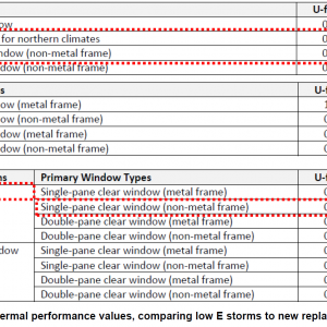 如果你有一个能量模型,你可以在下表中查看风暴窗口(低E或不低E)对窗口u因子的影响;我相信是来自LBNL的数据。由此,你可以掌握成本效益。