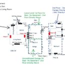 1)基于下面的详细信息,是在两个磁头结构技术上是可行的,说两富士通12或15RLS3?需要注意的是在连接的平面图如图“头2A或2B”将被安装在内壁 - 安装是如何棘手假定距离到外部单元<35'?2)请评估所附手册Ĵ结果。与其浪费时间与此RESNET评价者来回的,我们怎么能可靠地降低他的结果的方式,对浆纱,定位头有用,同时最大限度地减少房间到室温平衡问题?3)任何人有在没有在每个级别头错层房屋迷你分裂的经验吗?我家有三个层次。我没有计划安装一个头覆盖露天楼梯,比其他单位,或者一个吊扇对流其他较低20'x20’ 巢穴。你看到大红旗在这?请注意,书房有滑动玻璃门(0.6 U)朝东75平米,楼板上档次,外墙,壁炉到南部,和到西部附车库。4)以任何机会,任何人有NY HVAC承包商不打上浆的经验吗? All this exercise is moot if I cannot find a reliable installer to do the proposed work. I contacted many, no serious bid (one head per room, 4+ tons system, $15k+ install, etc). I found “diamond” dealers to be no better than others. The mini split option is only economically feasible for two heads. I may as well replace the beastly HVAC in-kind for cheap, and invest the difference in solar PV. I have included a lot of details below. I apologize for the lengthy post. ————————————————————————————————————————- Location: Heating and US Climate Zone 4, Nassau County, NY House: See attached floor plan. 1950s built, 2×4 framed, two-story high split-level structure. There are four levels in the house, each level occupies half of building footprint. Starting from bottom up – unconditioned finished basement, den/attached garage at street level, living/dining/kitchen 5’ above street level, and upstairs bedrooms. 1800+ sq ft excluding basement, 2400+ sq ft including basement. Master bedroom as bonus room above attached garage. Total less than 100 sq ft of west-facing windows. Existing Conditions: Heating – 1980s gas boiler, 165k btu/hr input, typical 70F indoor setting during winter, no major temp balance issue (even in bonus room, +/- 3F at worst on +15F nights). DWH – 2000s, indirect, 40 gal. Cooling – 2015 SEER 13 outdoor unit, 1970s air handler and ducts in unconditioned attic, 3-ton, 10 central ac registers throughout the house, no comfort issue on 85F days. Fuel-Use Based Heat Load: Ranging from 38k Btuh to 45k Btuh for temp range between +15F and +70F (+70F to match Manual J input, this is also my house’s temp setting) I=B=R Heat Load: Roughly 38k Btuh at pre-improvement conditions Pre-Improvement Conditions: Roughly 5” fiberglass batts on attic floor; fiberglass batts in walls; all double pane windows; unconditioned finished basement (rim joists and foundation walls not accessible without major demo); all attic floor openings are temporarily sealed with plastic film in winter (whole house fan and ac registers, etc); fiberglass batts between bonus room floor and garage ceiling. Pre-Improved Blower Door Results: 3800 CFM50. ACH50 about 13 using whole house volume (including basement) of about 17,000 cu ft. Extent of Ongoing/Planned Retrofit – Air seal as much as I can in attic and garage; remove air handler, ducts, house fan and seal/insulate all attic openings; 10” blown cellulose to attic floor; ceiling fan in each bedroom Manual J Results: See attached results using 3800 CFM50 infiltration, pre-improvement conditions at 99% design temp. – I specifically asked for aggressive analysis. He calculated 66k/38k Btuh heating/cooling loads, and struggled to sanity-check his results. His reported loads ignored unconditioned basement. – Saw some single-pane windows used – likely skylight windows. Can reduce u-value in half, or about 1500 Btu/h heat loss reduction. – 24k Btuh heat loss from “winter CFM” appears unrealistic. He could not explain how the software goes from measured blower door 3800 CFM50 as input, to 394 “winter CFM”. What is the correct conversion? (394 CFM x 55F ΔT x 1.08 ~ 24K Btuh of heat loss) Regardless, I understand blower door exaggerates leaks from neutral pressure plane. What would typically be a more realistic CFM to use for both winter and summer? – If I am removing ducts in attic, there should be no heating/cooling loss from ductwork? It reduces heating/cooling loads by 9k/5k Btuh. – Not clear if he added heat gain from four people and other equipment? This further reduces heating load. – His room-by-room cooling loads confirm there is no need for one head per bedroom, assuming I can trust his cooling load results. – Den peak loads are scary high. What’s the realistic range based on descriptions in Question 3? Please comment on my rationale blow. Without overthinking too much: – I am comfortable with my fuel-use based heat load on the order of low 40,000 Btuh at pre-improved conditions. If I understand correctly, at +17F, Fujitsu 12RLS3 covers 13,500 Btuh, and 15RLS3 covers about 18,000 Btuh. With some improvement, a combination of two 12 and/or 15RLS3 should cover my whole house head load at 99% design temp? No need to worry about minimum modulated output at +47F since my part loads are high? – If an existing 3-ton central ac with leaky ducts in attic can cool the whole house comfortably, with some improvement, a 2-ton to 2.5-ton sizing should be appropriate? – Only issues are upstairs head placement in a way that does not complicate installation, air distribution to bedrooms and den despite open stairways, and finding a competent installer to comply with intended design. Thanks to those who make it this far in my post. My family and I will appreciate any comment. Thanks, Jerry