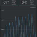 我们在房间里安装了一个AcuRite传感器来跟踪温度,附上一些照片,这样你就可以看到温度峰值。外部温度的变化和我们看到这些峰值之间没有明显的关联。墙壁控制器在所有情况下都设置为华氏63度。