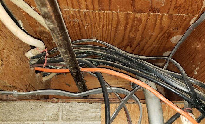 Unfortunately, I have a bit of an issue. The house is a modular home, and I don’t have ready access to either the sill joists or to between the floor joists (minus a handful of floor joists directly under the bathroom to accommodate piping / electrical, which are in a couple of the attached pictures). There is structural sheathing on the underside of the floor joists. I have some concerns about the structure of the house as it is (temporary, upside down, undersized floor jacks supporting the house; subfloor panels parallel to the joist runs; plenty of loud cracking / popping noises overhead and coming from the attached garage; wonkiness with joist span and OC spacing under bathroom to accommodate piping). So, I had a structural engineer come out and I am awaiting the report.