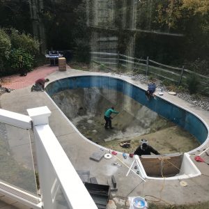Yes the Concrete slab was pitched correctly as when I was getting estimates for this job I also had a new liner put in the pool and had pool companies inspect the area.