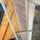有雪松T&G包覆处理操作系统mo UV and locally milled 4×10 Douglas Fir beams treated with the same product, both showing significant mold. This product was chosen to maintain the natural wood colour.