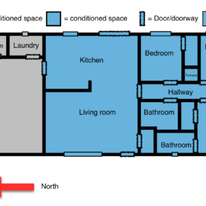 这是一座1972年建造的1300平方英尺的单层牧场,几乎就在4B区和5B区(新墨西哥州高沙漠)的边界上,有一个开放的厨房/起居室/餐厅和三间卧室,位于中央大厅外。我的冬季设计温度为18度,夏季设计温度为98度。实际上,冬天气温几乎从不低于15度;每年只有几个小时,几天。冬季白天的温度通常在50度甚至60度左右,夏季夜间的温度通常降到60度左右。这里没有极地涡旋,随着时间的推移,全球变暖可能会让这里变得更热。