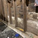 是的他们是解决水损害,corner. A combination of a downspout to who knows where (likely clogged), and the grade currently sloping towards that wall.