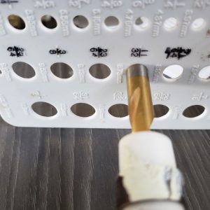 在照片中,您将看到最大的钻头,将适合½PEX配件11/32。这是2钻径低于3/8。3/8钻头可以装进3/8根管子和管件中。