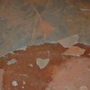 The slab was poured with a bit too much water (5.5 slump) on a hot day in July. I think this caused some water to get trapped, which caused a top layer of concrete, about 1/4″ to 1/2″ thick to peel off and sound hollow under some spots. Also, the floor isn’t perfectly level, as the troweling machines were put on it too soon.