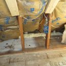3.显示玻璃纤维贝蒂随便填充在椽子之间的照片让我怀疑你的绝缘承包商不知道如何隔离倾斜的屋顶组件(有时称为大教堂天花板)。如果要将这些椽子与玻璃纤维毡隔离隔离,则需要(a)从屋顶护套下方的拱道到脊的连续通风通道,(b)r-38或r-49绝缘,和(c)内部侧面空袭。有关此问题的更多信息,请参阅如何建立绝缘大教堂天花板。