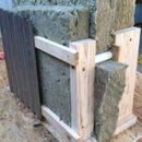 In the attached photo of this exterior wall mock-up there is no WRB. I plan to install some kind of WRB on the 2×4 exterior frame over the Roxul then apply the 1×3 strapping and corrugated steel siding (the actual siding will be wavey with a grayish weathered patina). My concern is heat on the southern exposure although most of it will have roof overhangs for summer shading. Should I use roofing felt (15 or 30#), or housewrap (Tyvek or cheaper HD everbuilt) ? The vertical corrugations allow for air movement cooling and there is no contact conductance but the heat radiation might be too hot for the felt? Also – perforated L flashing and ICF protection Z flashing will be installed at the bottom even though it’s not on the mock-up.
