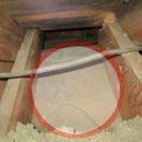在我认为所谓的地板托梁,一楼的天花板和阁楼地板之间的空间之间,似乎有些松散的填充材料。