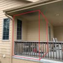 你好。我正在计划一个小额加法项目,涉及在我们的门廊上完成空间,这将向家庭的内部开放。我附上了一个关于我家的区域的照片。正如你可以看到我想要在我的门廊上完成这个小5.5'x 5.5'空间,这将需要敲掉所示的红色盒子里的两个墙壁(墙壁和垂直于它的墙壁)。结果,是的,在这里看到的内角的家庭内将有一个结构柱。我拥有大多数项目都以框架和结构弄清楚。请注意,门廊上的黑色区域只是从几年前曾经拥有过的Tiki火炬的烟灰。这两个拱门的通风口将被重新安置到前景的屋顶悬崖上,并将继续运行,因为他们现在将在上面发泄屋顶线。