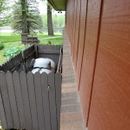 Also, ~ 1/3 of the perimeter has a 4′ high brick facade that seems to be installed directly in front of the 1″ foam sheathing (back of brick = back of plywood siding).